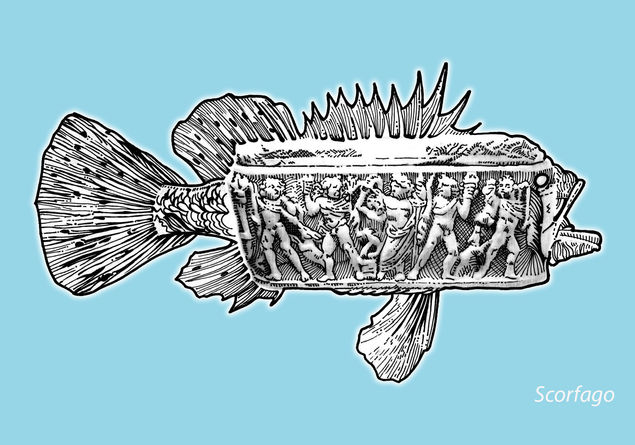 A surreal marine world that recalls the genetic and deep link with Classical Culture through an imaginative, inhabited by various types of animals and fantastic marine fauna. The images created in Sub_Cultura , are direct images, they somehow amuse, make people smile and obviously do not have the pretension of the representations of classical art, but rather, they claim a vision of lightness of intentions as in Pop-Art. The quotations of words and images are intellectual and not intellectual, they want to semantically make it easy to use and trigger curiosity and interaction for this or that find or ancient fragment that we can go to find and investigate on the Internet or visiting the Archaeological Museum of the Phlegraean Fields or diving into the depths of the underwater park of Baia and so on ...